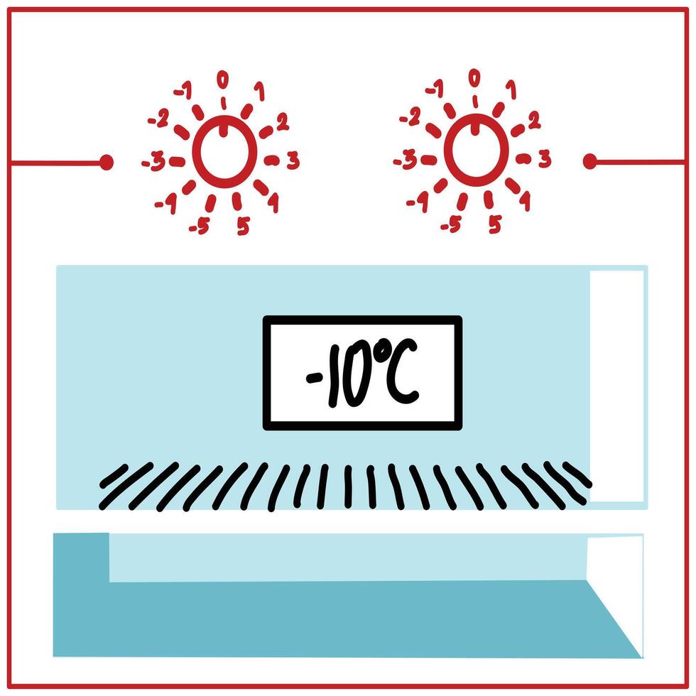 Illustration of a complete refrigerator with simple temperature control indicators and buttons in flat style. Element graphic design template with a refrigerator theme Pro Vector