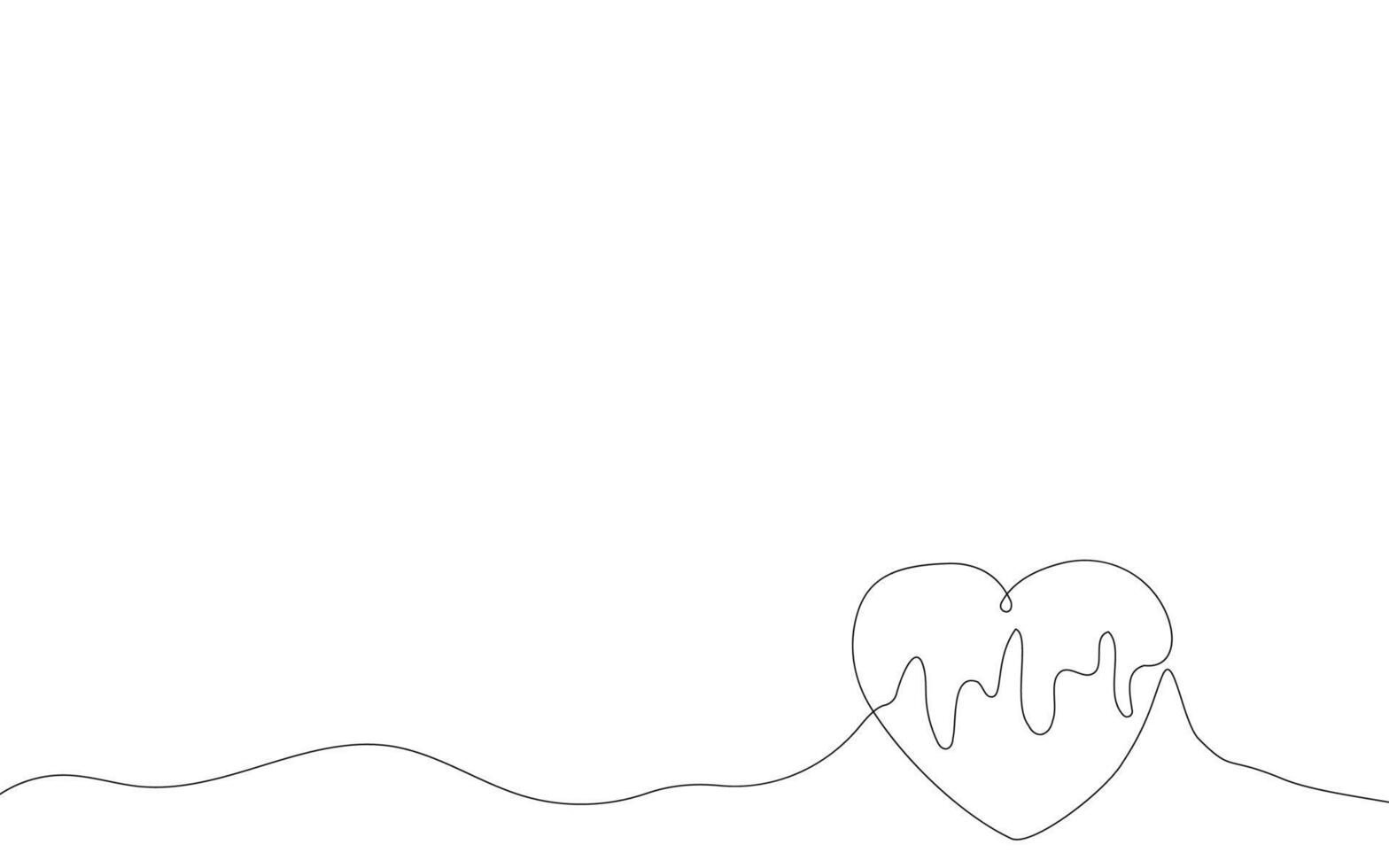 Outline heart with heart beat one line continuous drawing illustration, minimalistic background. Hand drawn linear silhouette background Pro Vector