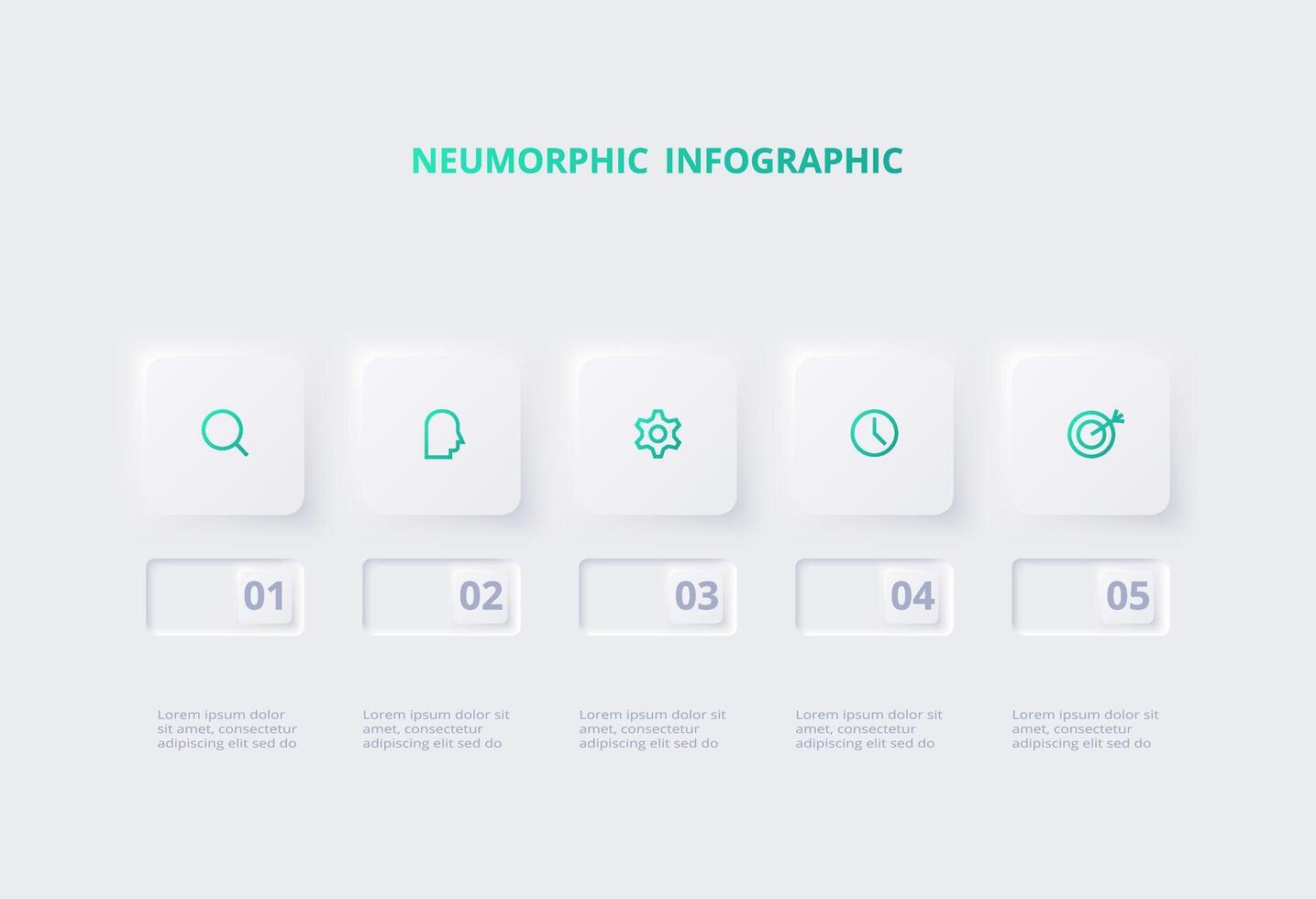 Neumorphic flowchart infographic. Creative concept for infographic with 5 steps, options, parts or processes. Template for diagram, graph, presentation and chart. Pro Vector