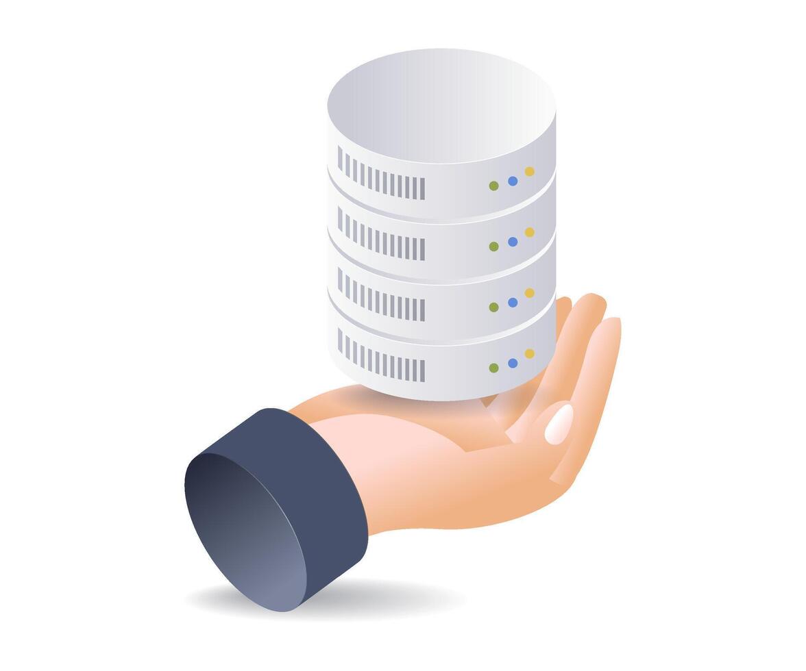 Database control in hand infographic flat isometric 3d illustration Pro Vector