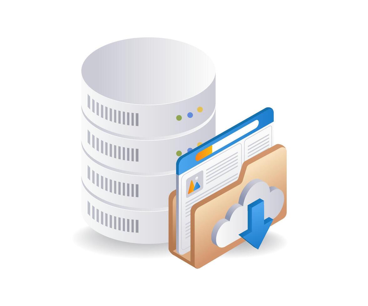 Database folder server technology infographic flat isometric 3d illustration Pro Vector