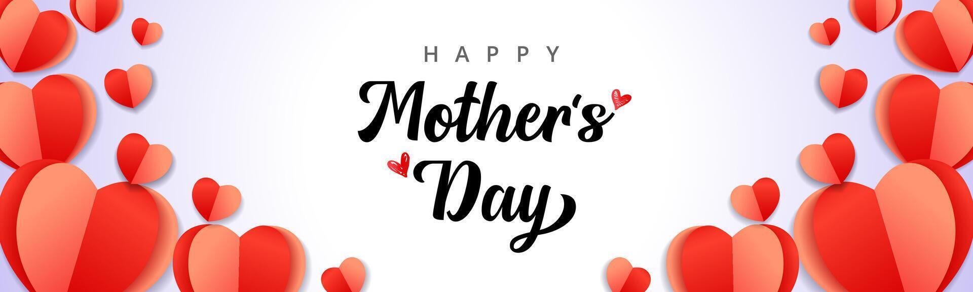 Happy Mother's Day Internet banner, web button with 3D paper style elements Pro Vector