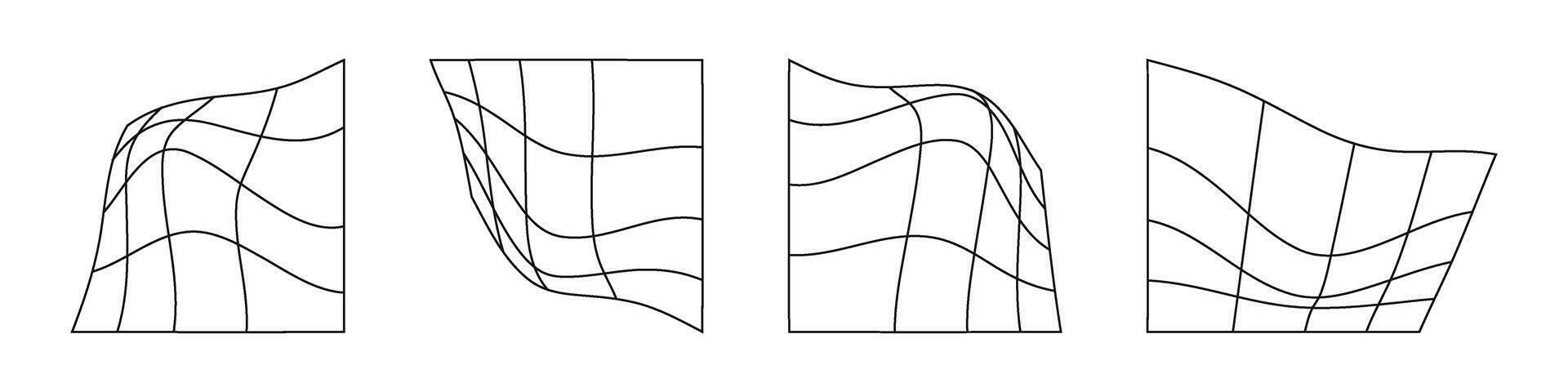 Abstract 3D wireframe mesh grid with a wave pattern. Flat illustration isolated on white background. Pro Vector