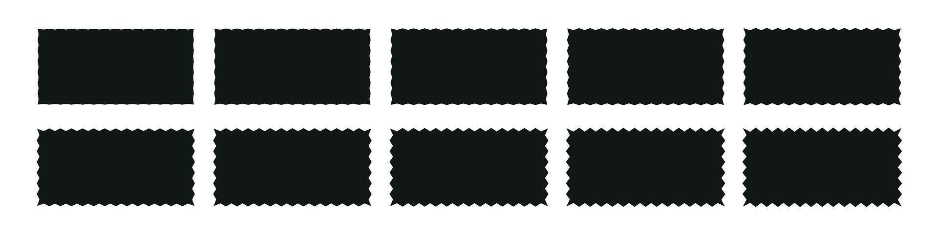 Wavy edge frames scalloped borders , rectangle and square box. Squiggle waves border. Flat illustration isolated on white background. Pro Vector