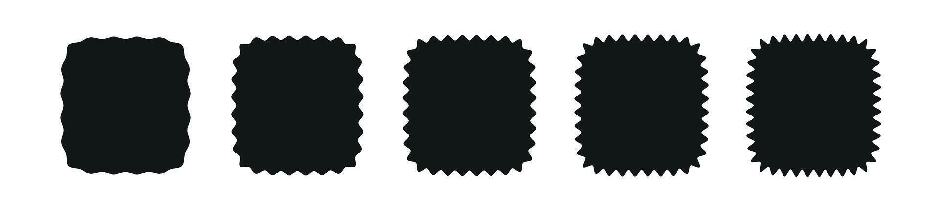 Wavy edge frames scalloped borders , rectangle and square box. Squiggle waves border. Flat illustration isolated on white background. Pro Vector