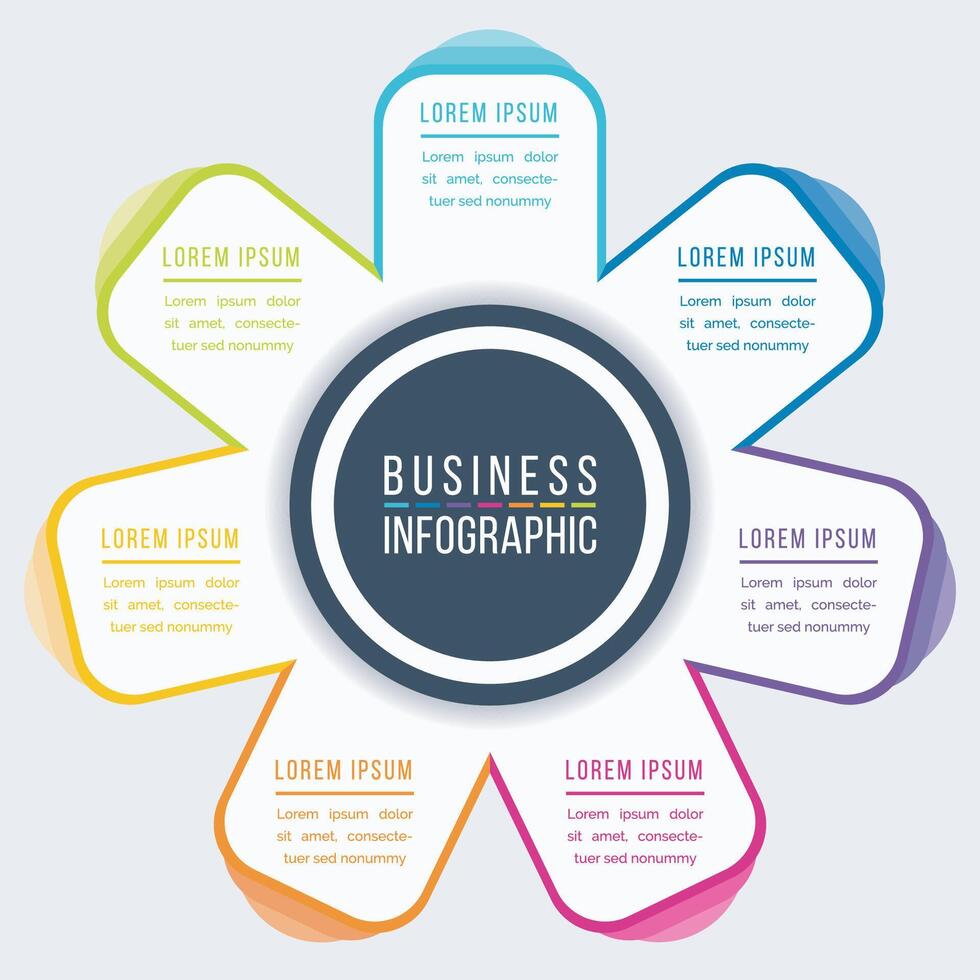 Infographic business design 7 Steps, objects, elements or options circle infographic template for business information Pro Vector