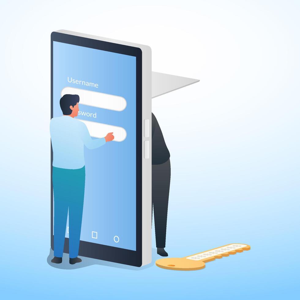 hacker retrieves password from fake website, metaphor of password theft Pro Vector