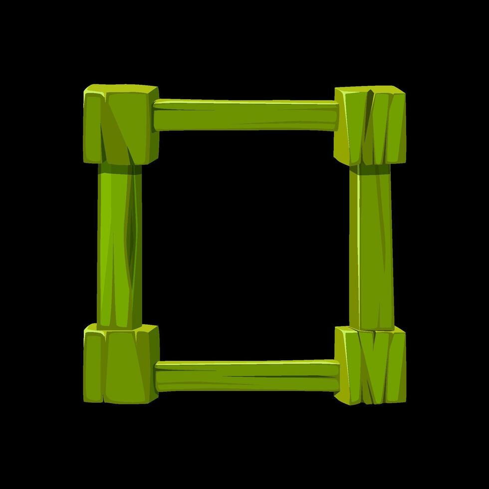 Wooden game frame or border. Green plank and panel for 2D game interface design and UI element. Pro Vector