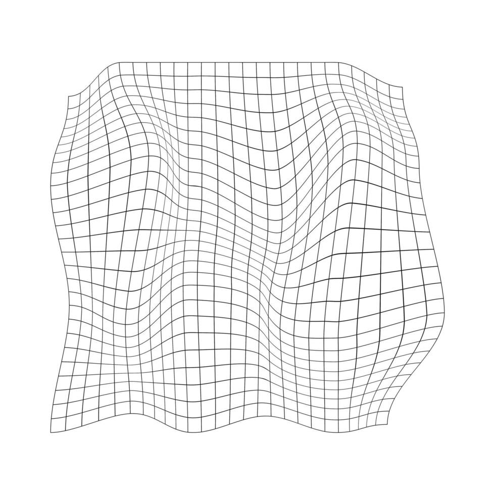 Distorted grid surface. Mesh warp texture. Curvatured net. Checkered pattern deformation. Bented lattice texture isolated on white background. Pro Vector