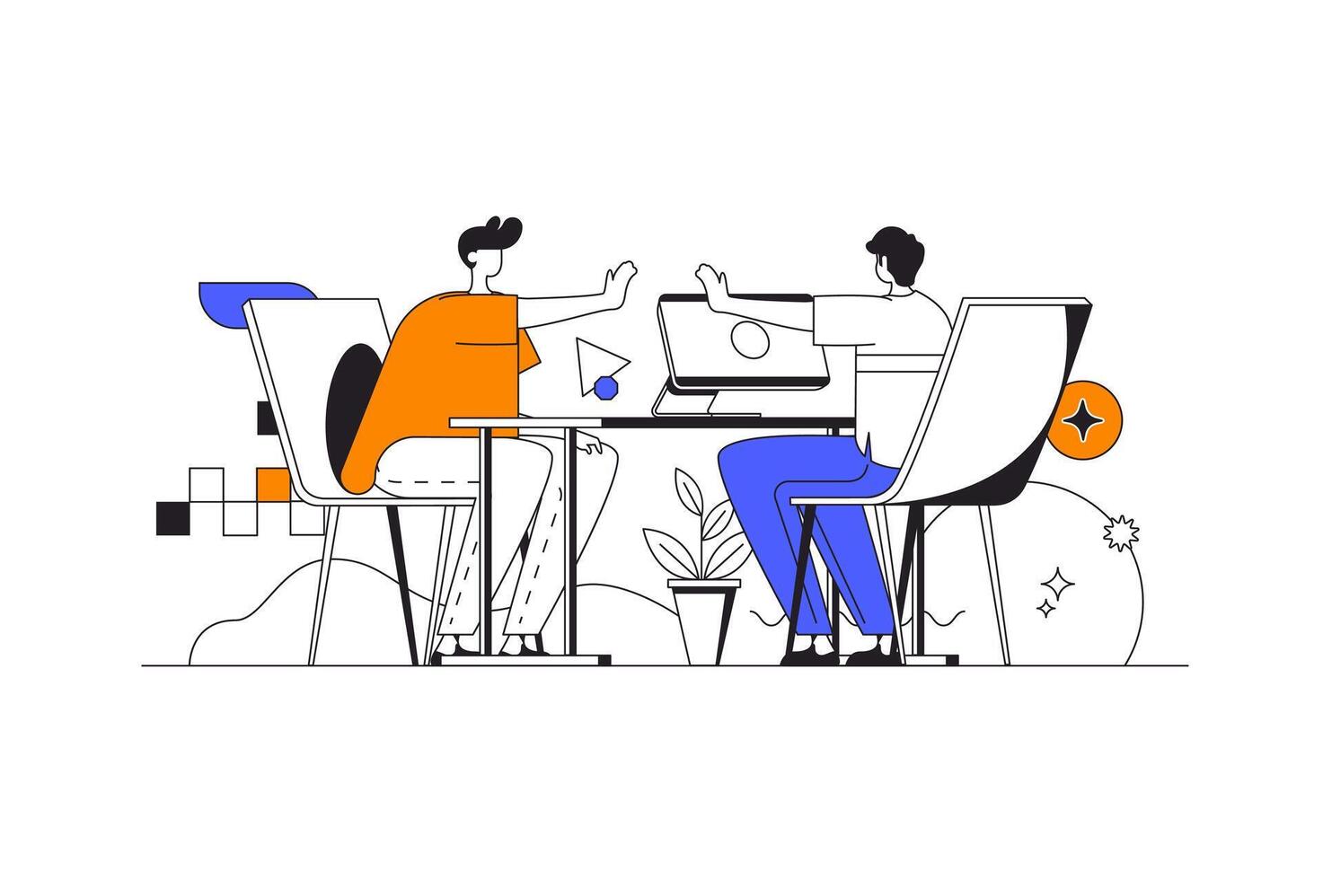 Best feedback web concept in flat outline design with characters. Client writing comments and evaluating. Company employee reads customer reviews. User experience people scene. illustration. Pro Vector