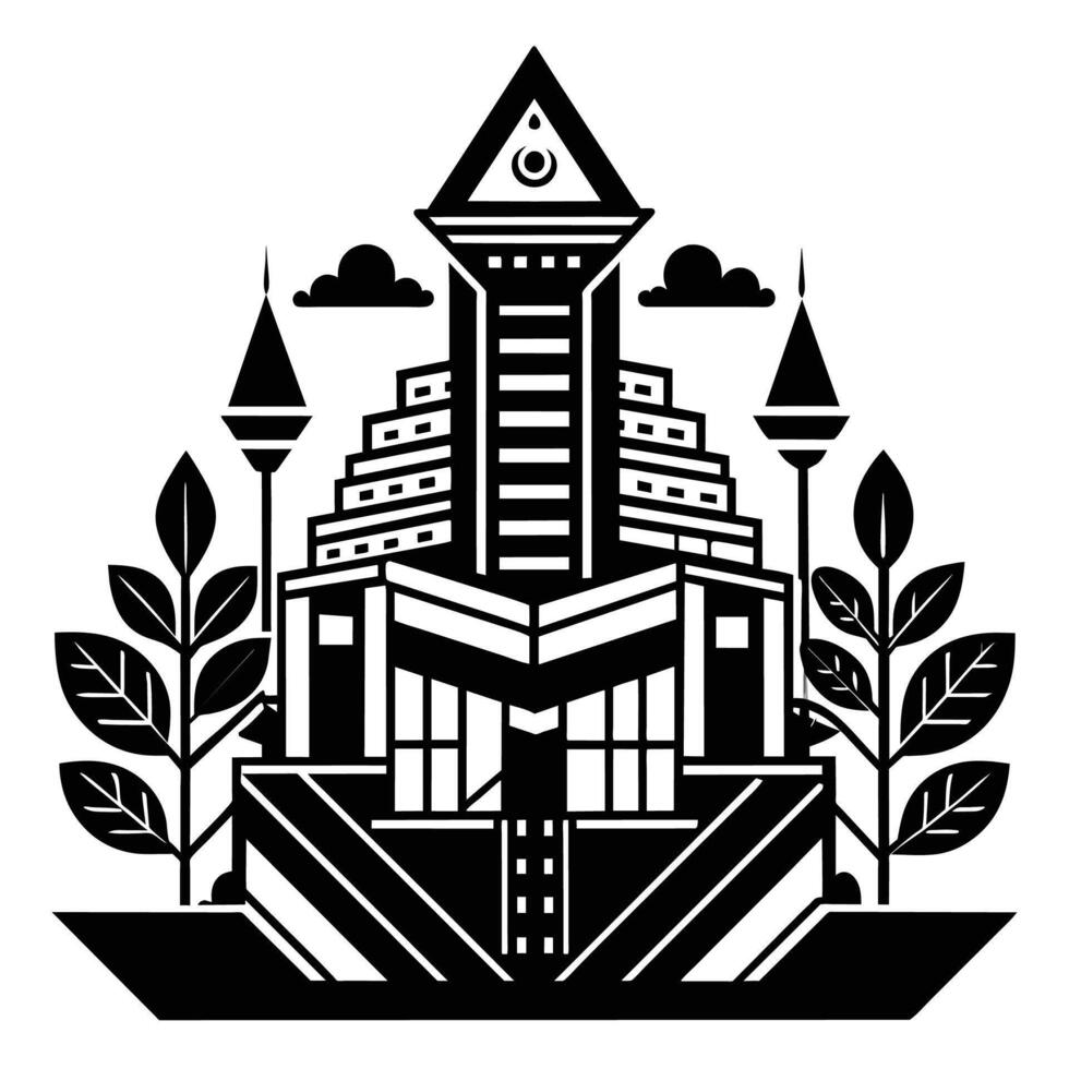 Black and white photograph of a building standing tall in an urban environment, Create a design using only black and white to represent the concept of building vector