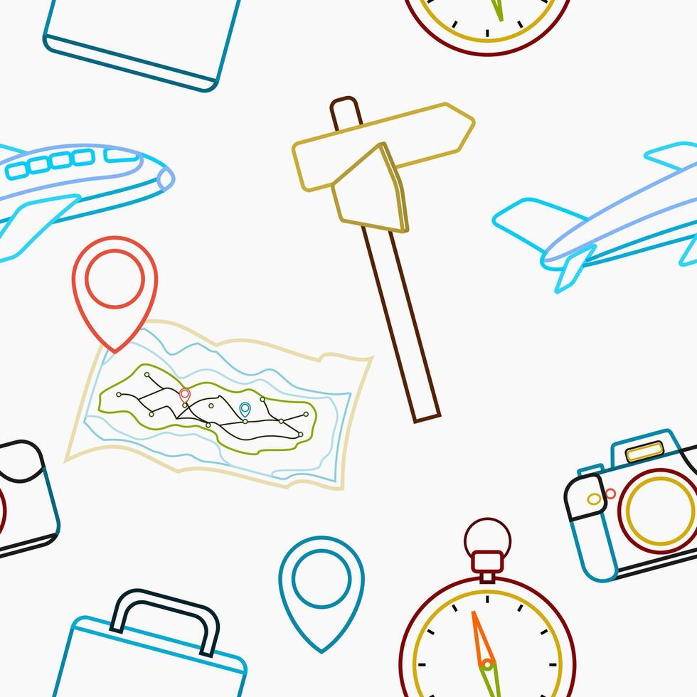 Editable Traveling Equipment Outline Style Vectorized Illustration Seamless Pattern for Creating Background and Decorative Element of Tourism Related Project Pro Vector
