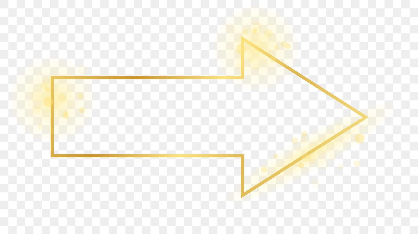 Gold glowing arrow shape frame isolated on background. Shiny frame with glowing effects. illustration. Pro Vector