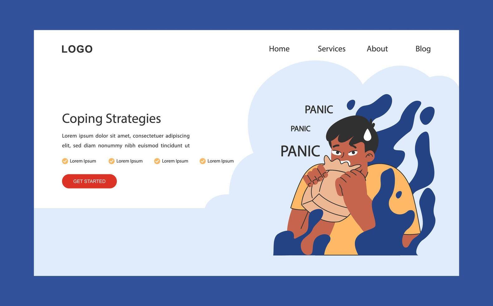 Overcoming fears web or landing. Characters confronting fears Pro Vector