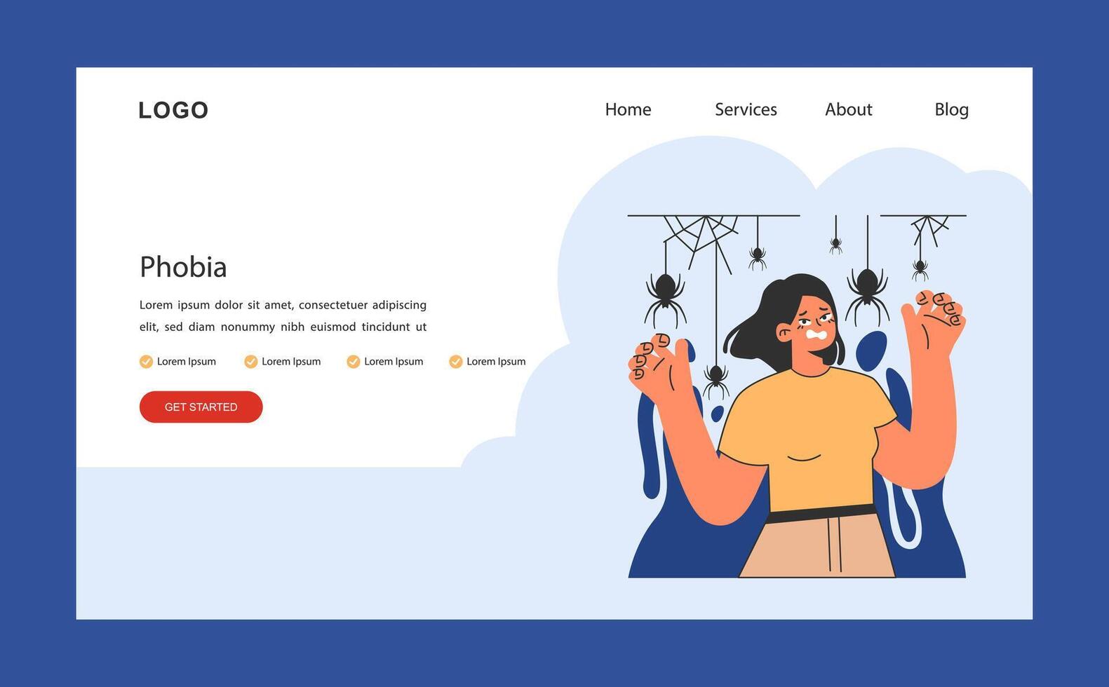Overcoming fears web or landing. Characters confronting fears Pro Vector