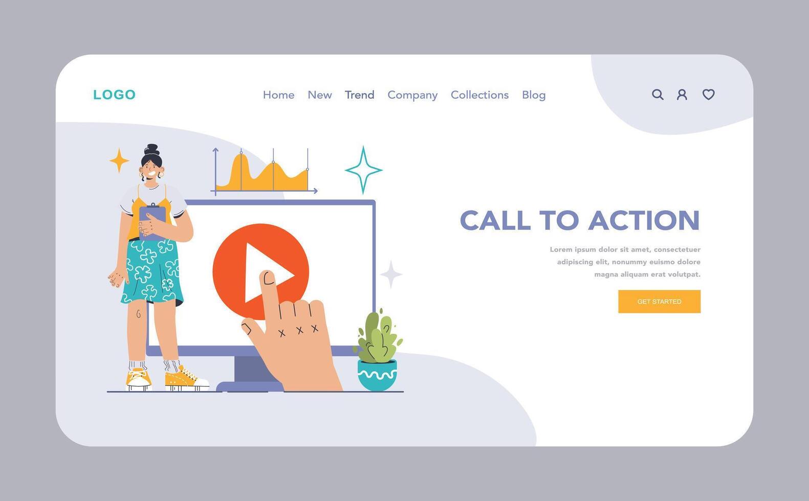 Digital marketer observes analytics chart, urging viewers with a compelling Pro Vector
