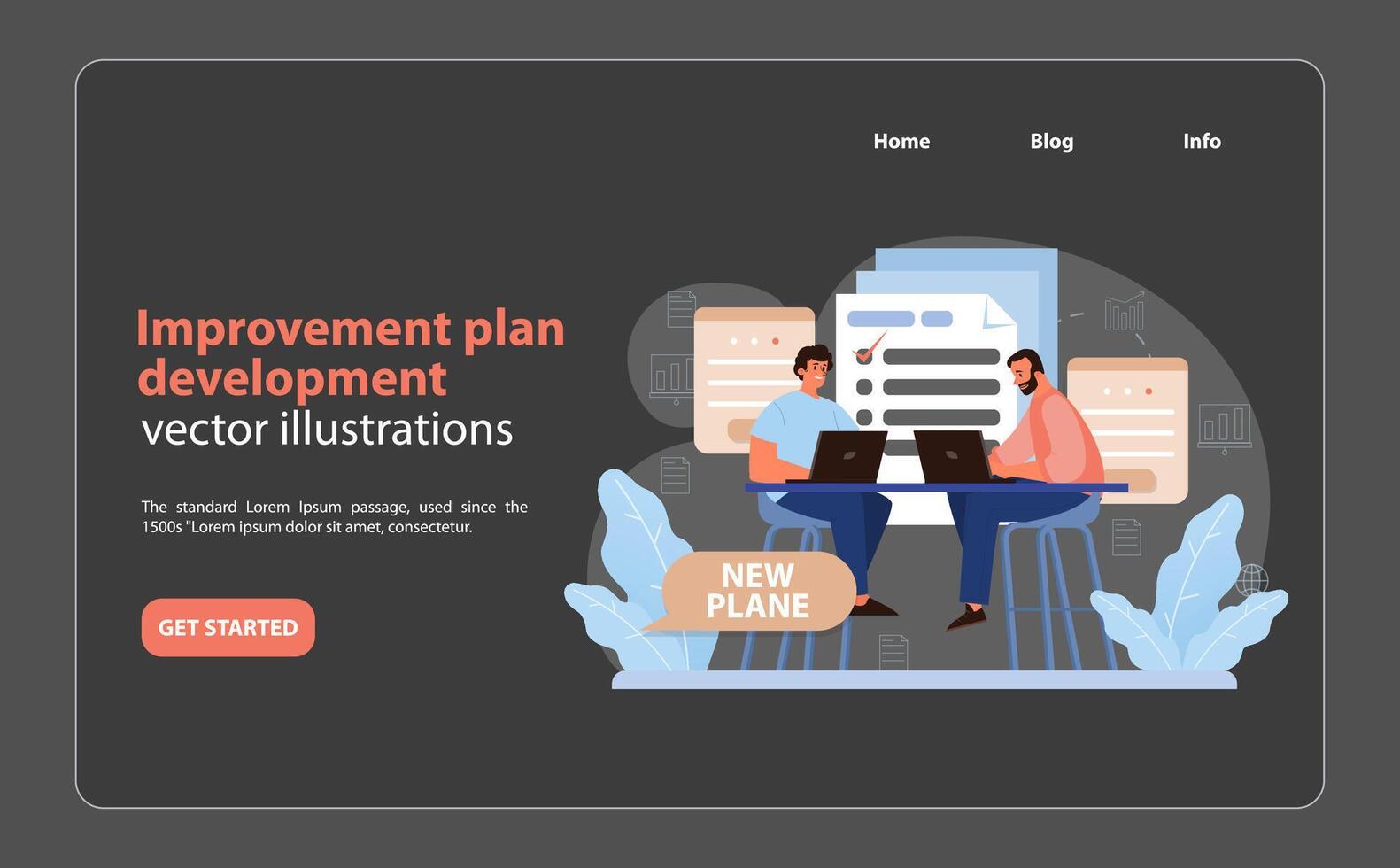 Benchmarking Plan Development . Collaborative teamwork in action. Pro Vector