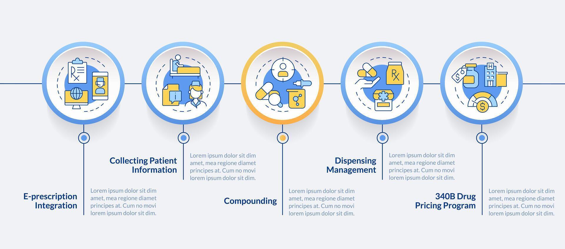 Digital medical workflow organization circle infographic template. Data visualization with 5 steps. Editable timeline info chart. Workflow layout with line icons Pro Vector