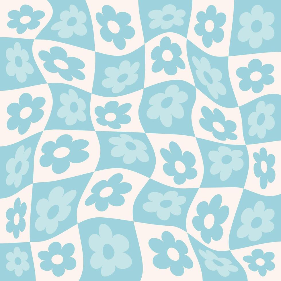 Y2K background, retro abstract flowers on distorted chessboard. Aesthetics of the 90s, style of the 2000s Pro Vector
