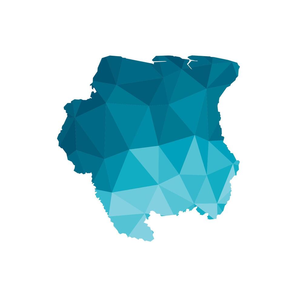 isolated illustration icon with simplified blue silhouette of Suriname map. Polygonal geometric style, triangular shapes. White background. Pro Vector