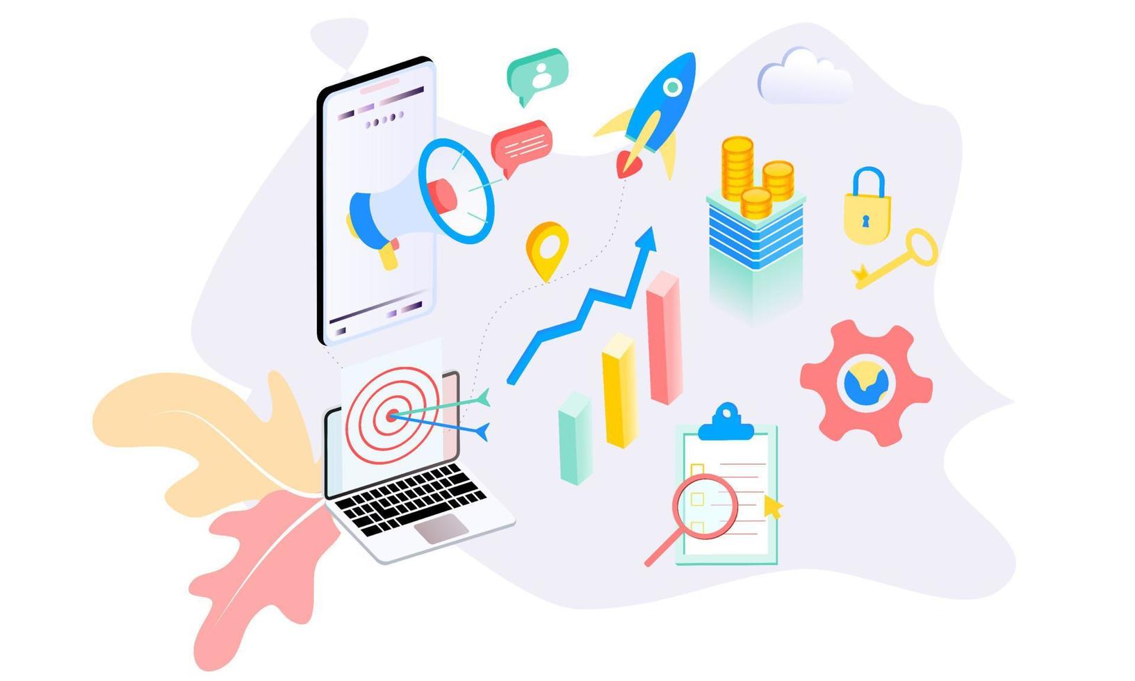 Landing page of SEO Search Engine Optimization modern flat design isometric template. Conceptual SEO analysis and optimization, SEO strategies and marketing concept vector illustration for web site.
