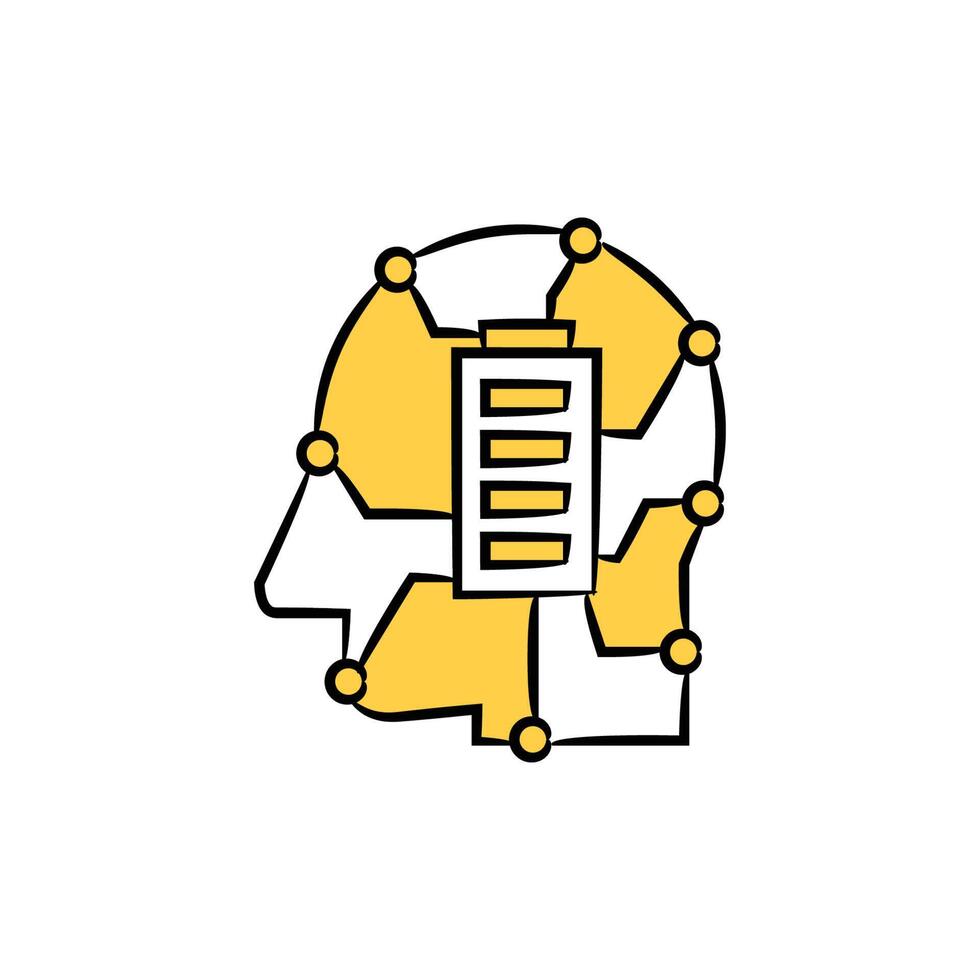robot brain with a battery in it Pro Vector