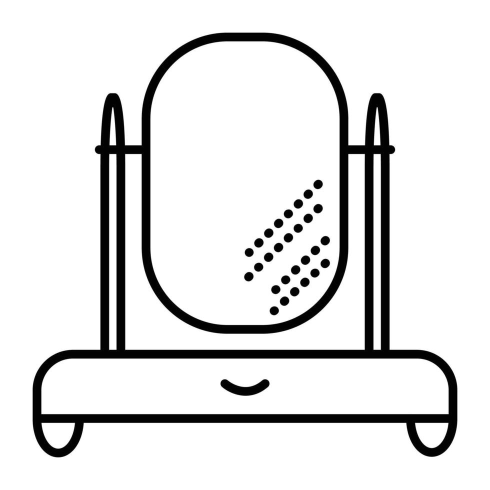 Console mirror with a drawer, dressing table, front view of furniture, single black line illustration, outline monochrome sign Pro Vector