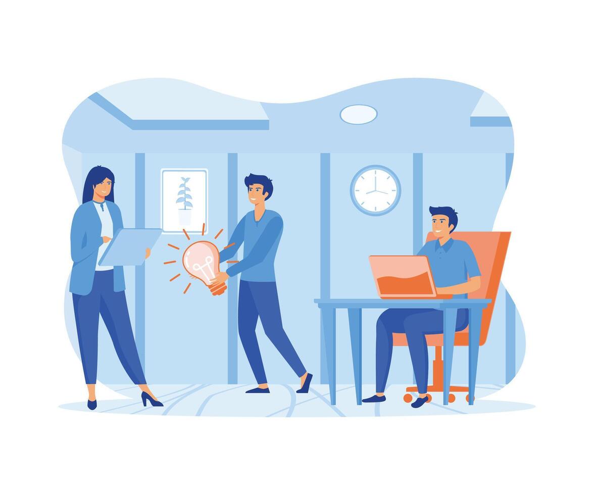 Online assistant at work. Promotion in the network. manager at remote work, searching for new ideas solutions. flat modern illustration Pro Vector
