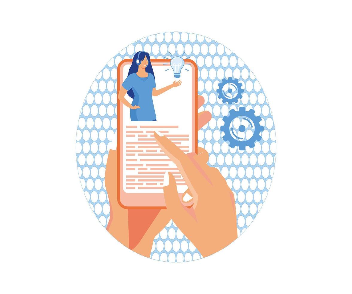 Concept customer and operator, online technical support for web page. Female hotline operator advises client. Online assistant, virtual help service on smartphone. flat modern illustration Pro Vector