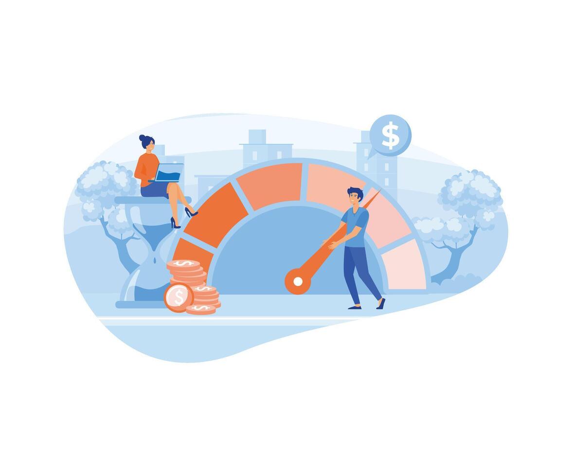 Cost optimization concept. Idea of financial and marketing strategy. Cost and income balance. Spending and cost reduction, while maximizing business value. flat modern illustration Pro Vector