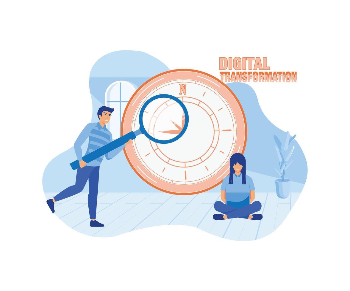 Data Analysis and Digitization Concept, Digital Transformation or Disruption, Financial Statistics, Big Data or Performance Measuring. flat modern illustration Pro Vector
