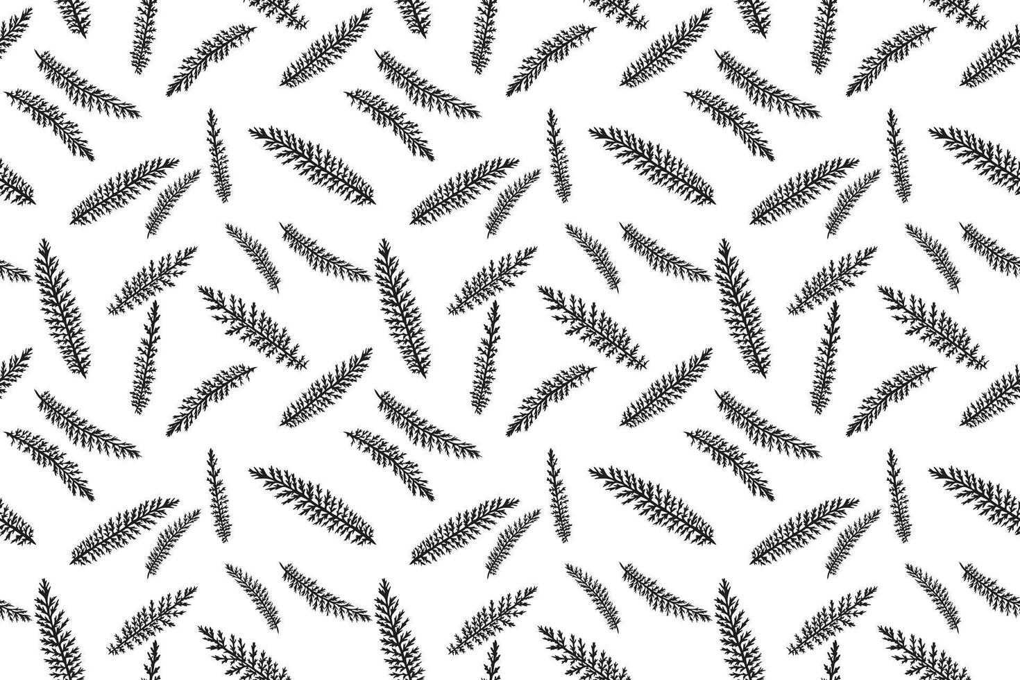 Black and white tiny branches leaves fir seamless pattern. hand drawn sketch. Minimalist abstract simple flat botanical patterned. Collage for designs, fabric, printing vector