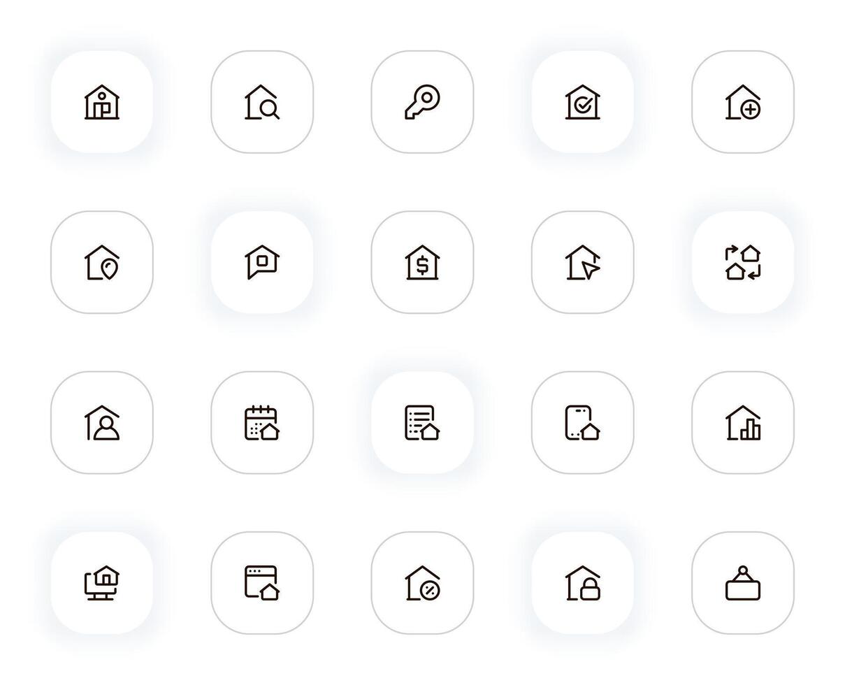 Real estate line icons set. House, searching apartment, key, location, rent and other buttons. outline pictograms for web and ui, ux mobile app design. Editable Stroke. 24x24 Pixel Perfect. Pro Vector