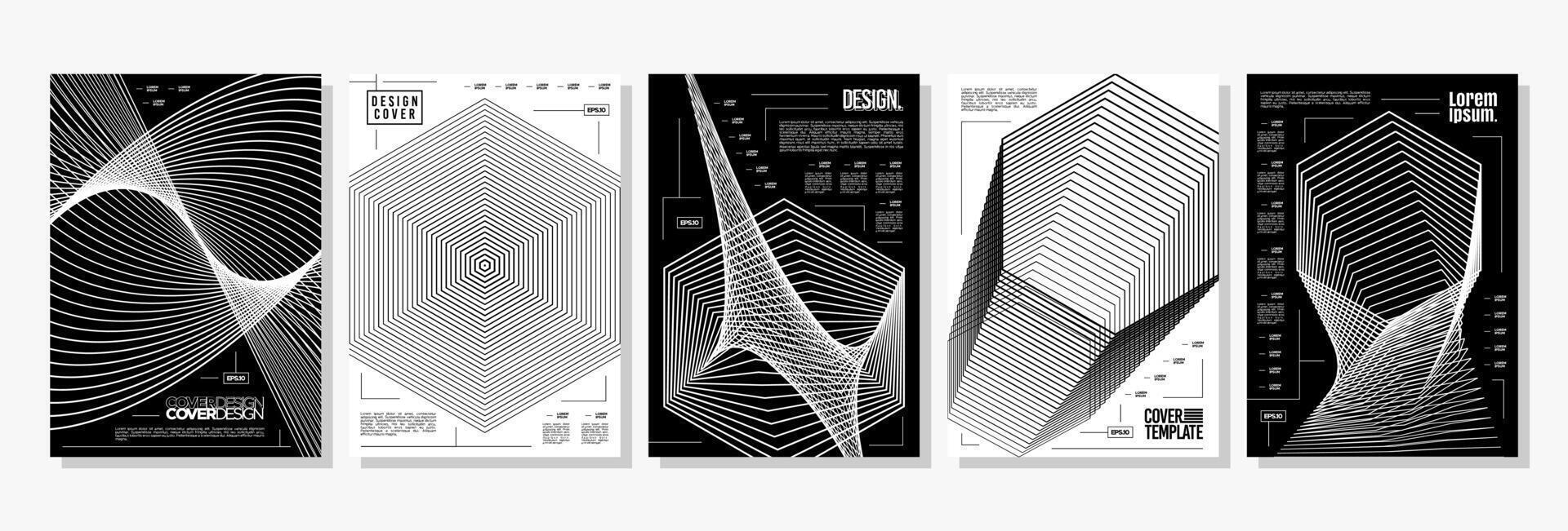 Dynamic network black stripe line abstract cover design set Pro Vector