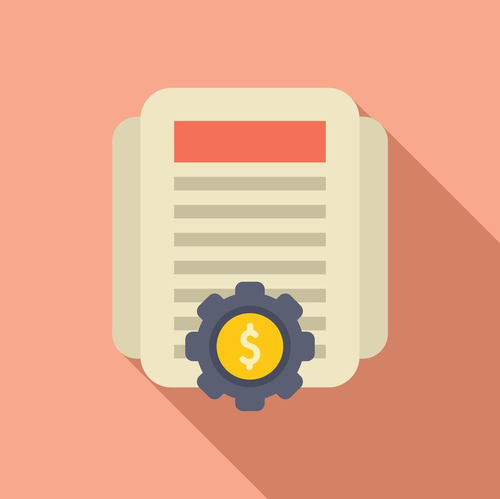 Flat design icon of a document with a cogwheel and dollar symbol representing costefficiency in business Pro Vector