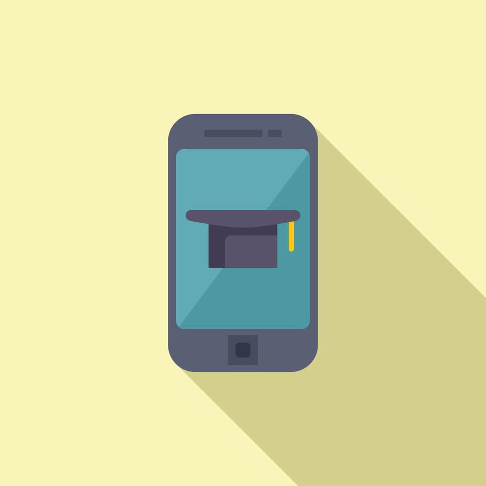 Flat design smartphone with graduation cap icon, symbolizing digital learning Pro Vector