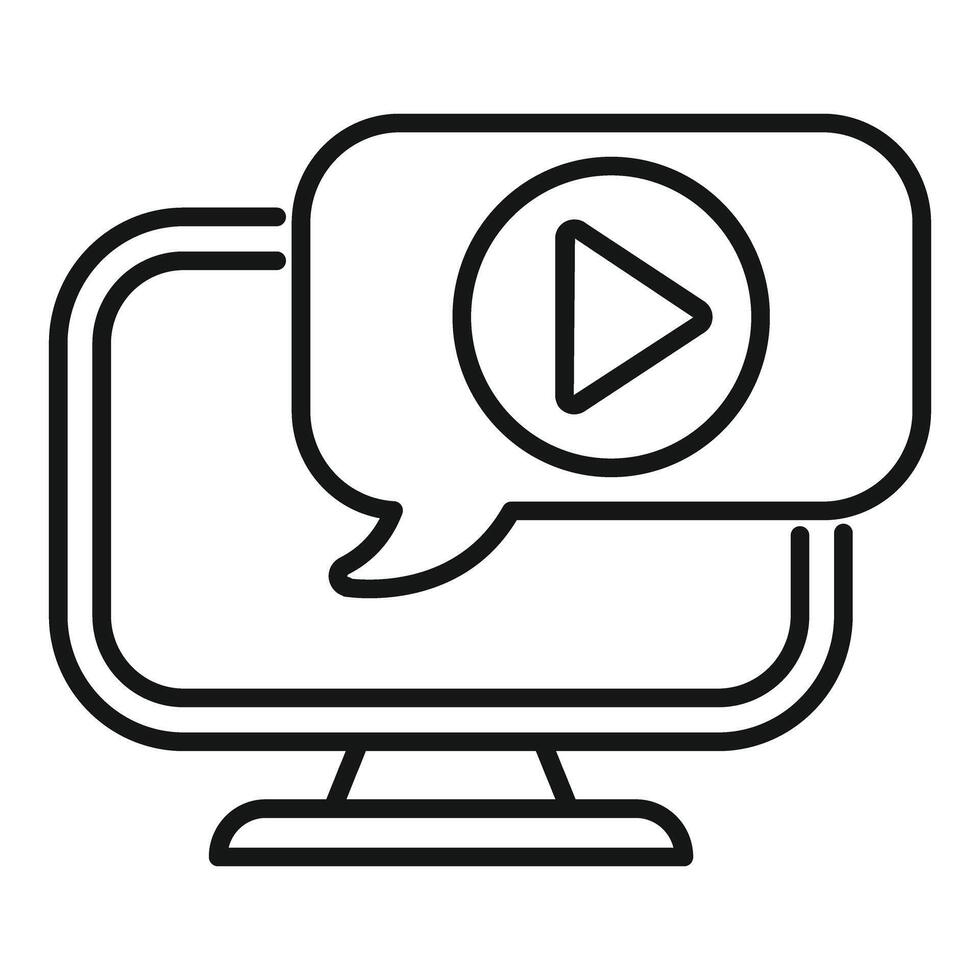 Line art icon of a computer screen with a chat bubble and play button Pro Vector