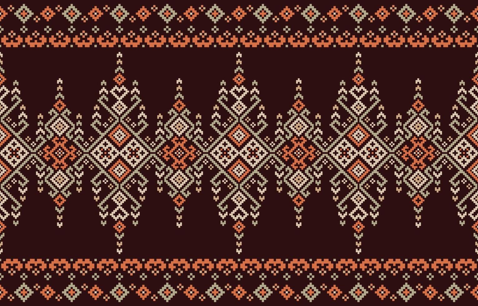 Fabric design featuring a cross stitch pattern of geometric shapes. Design for cross stitch,ethnic,fabric,pattern,embroidery,motif, cross,stitch,folk,retro,pixel,handcraft,abstract,batik,zigzag. Pro Vector