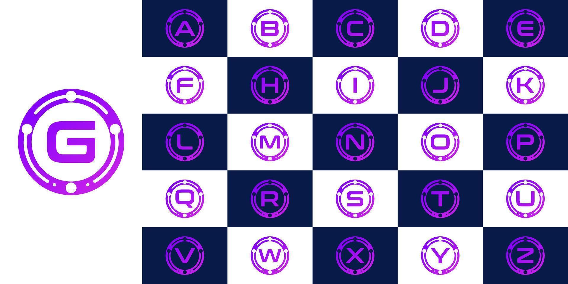 collection of initial letters a to z with logo design, with with dotted gradient digital circles, for digital, technology, data vector