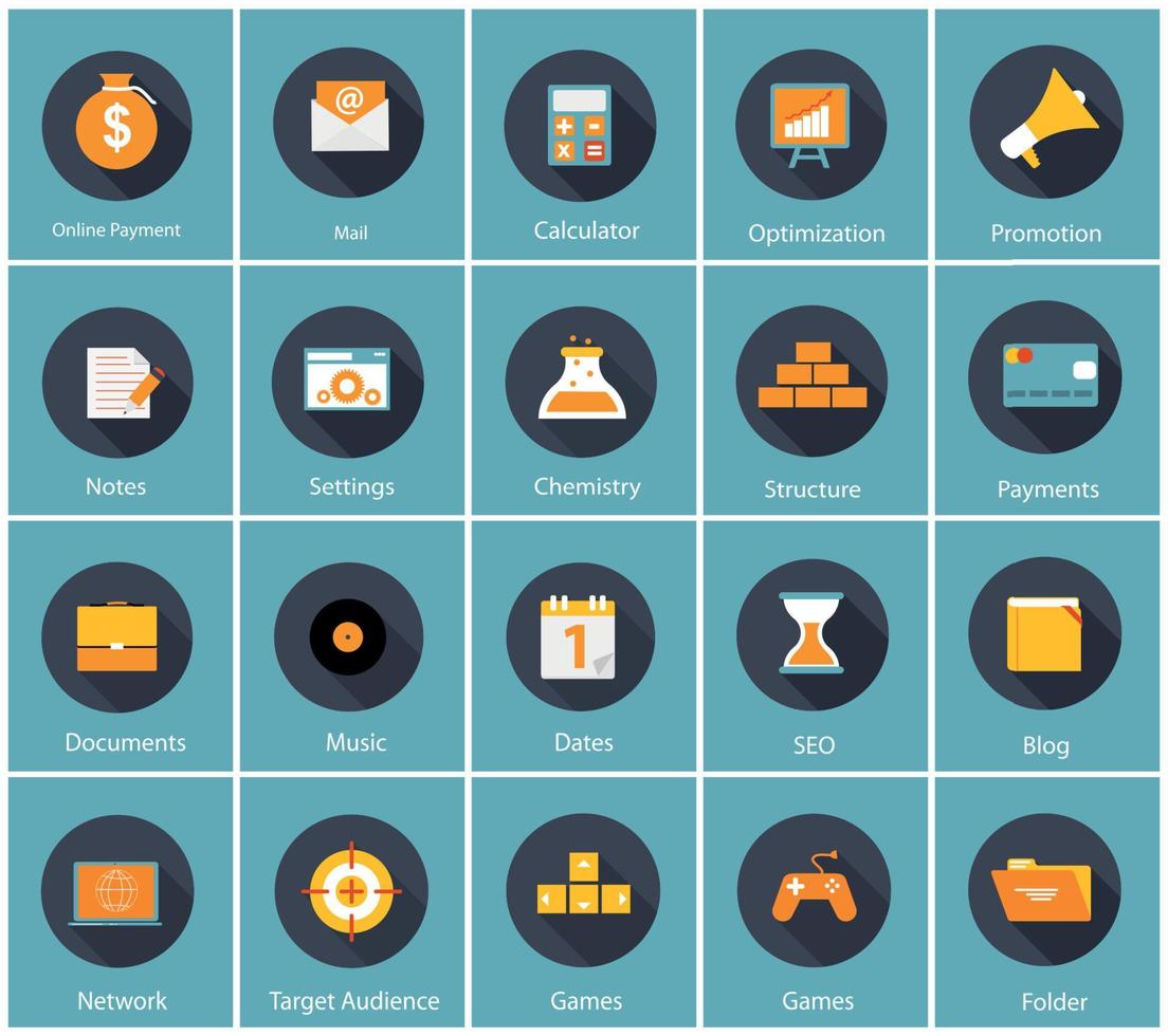Big Vector Collection of Flat Business and Finance Icons with Long Shadows. Modern  Design Elements for Web and Mobile Applications
