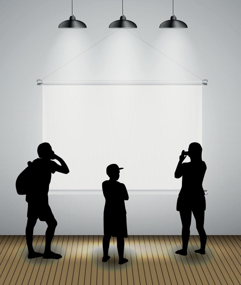 Silhouette of people in Background with Lighting Lamp and Frame look at the Empty Space for Your Text, Object or advertisement. Vector Illustration. Free Vector