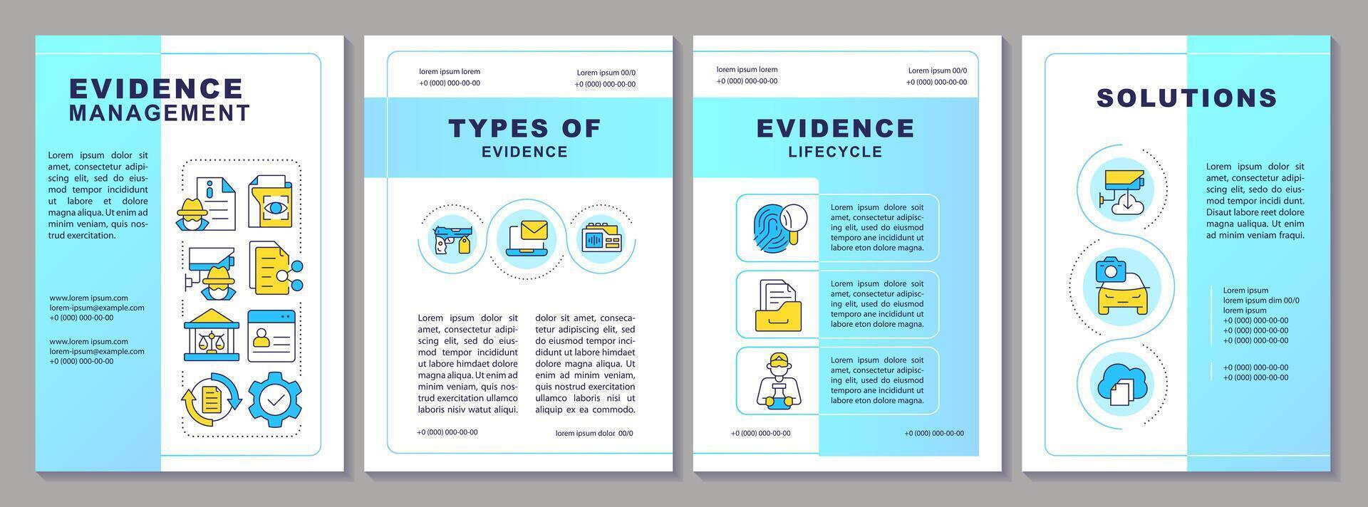 Evidence management brochure template. Digital forensics. Leaflet design with linear icons. Editable 4 layouts for presentation, annual reports Pro Vector