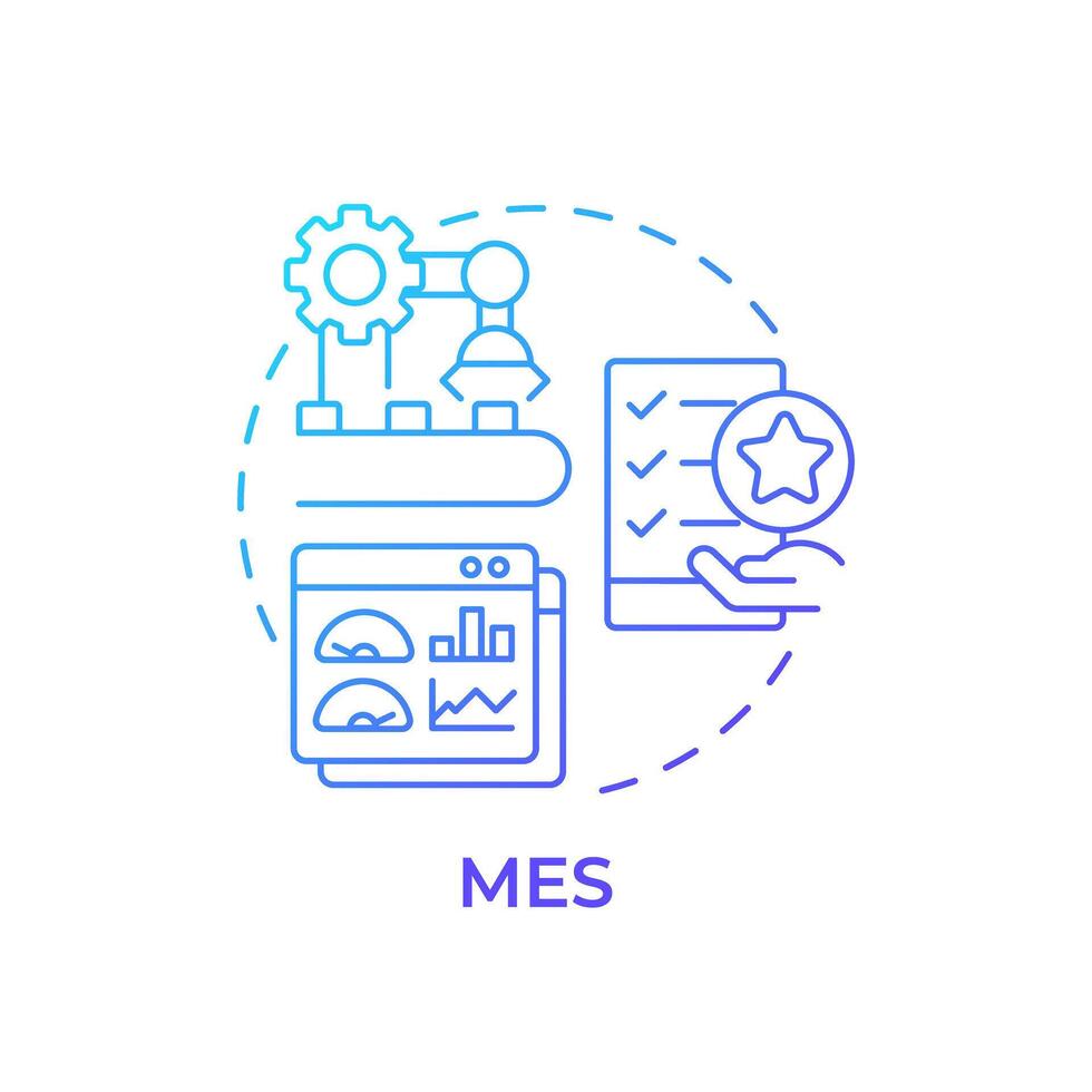 MES blue gradient concept icon. Manufacturing processes organization. Production scheduling, factory automation. Round shape line illustration. Abstract idea. Graphic design. Easy to use Pro Vector