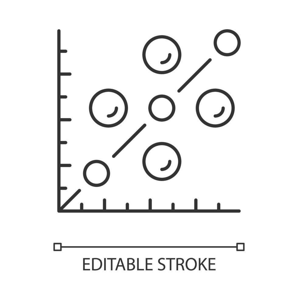 Scatter plot linear icon. Scattergram. Mathematical diagram. Chart on coordinate plane. Statistics data. Thin line illustration. Contour symbol. Vector isolated outline drawing. Editable stroke Pro Vector