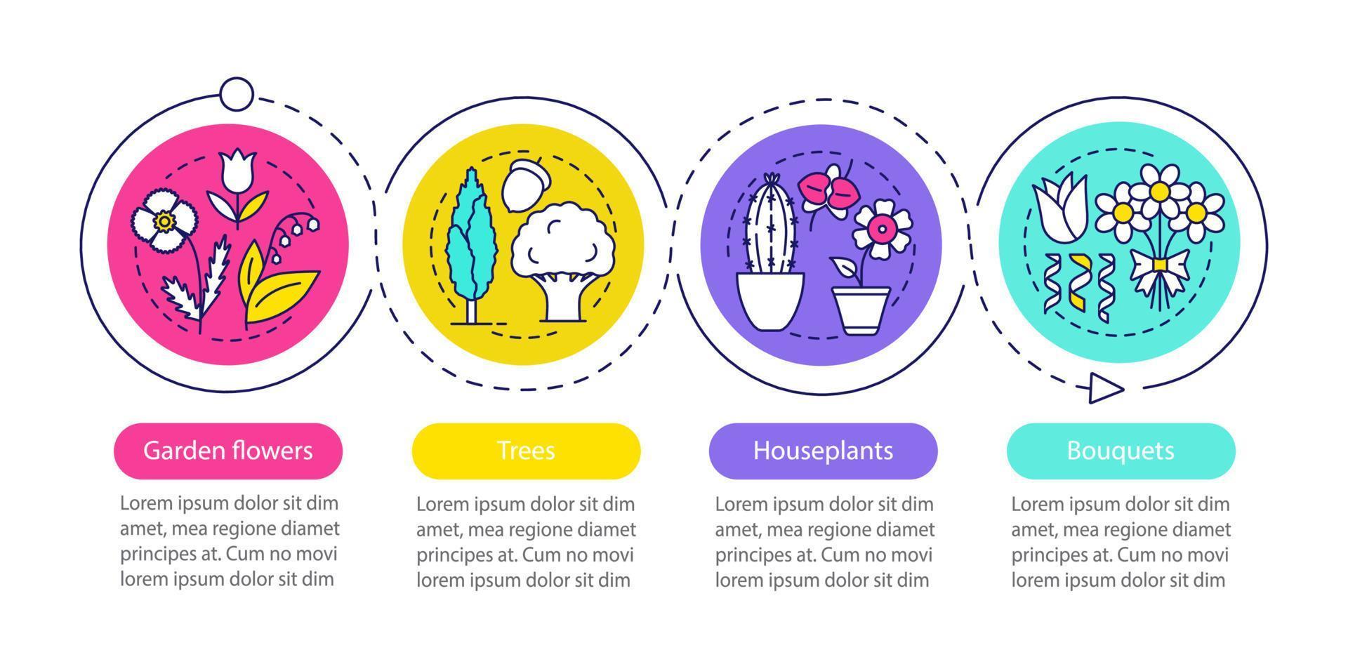 Plants vector infographic template. Business presentation design elements. Garden flowers, trees, houseplants, bouquets. Data visualization steps and options. Process timeline chart. Workflow layout Pro Vector