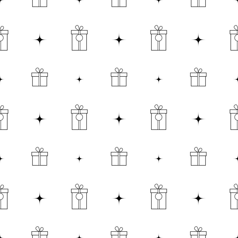 Christmas theme seamless repeat pattern created with elements like gift box and sparkling star, Hand drawn vector repeat pattern for textile, fabric, gift wrapper, packaging and web backdrop. Pro Vector