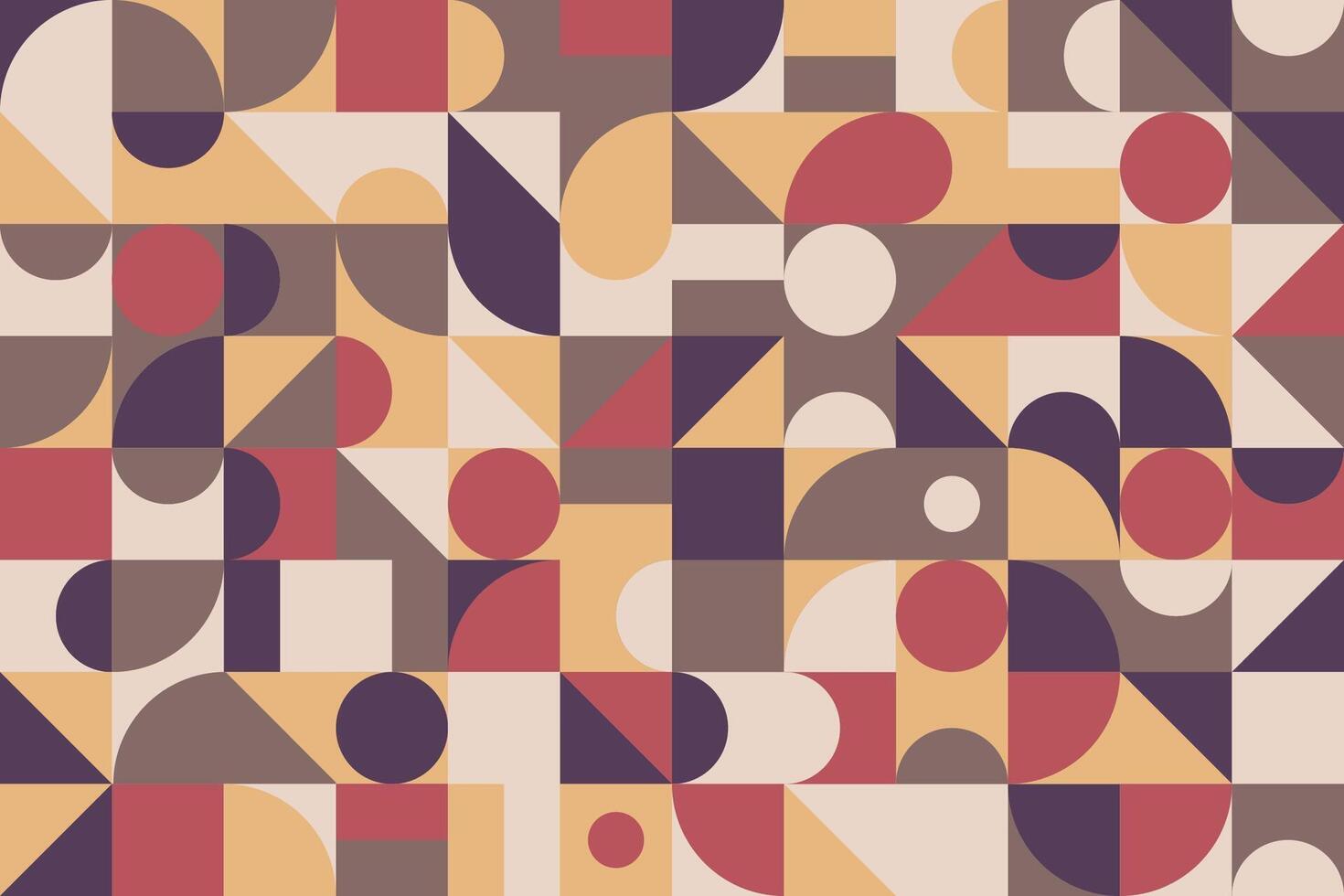 Retro-inspired geometric pattern with circles and squares in a warm palette of burgundy, mustard, and cream Pro Vector