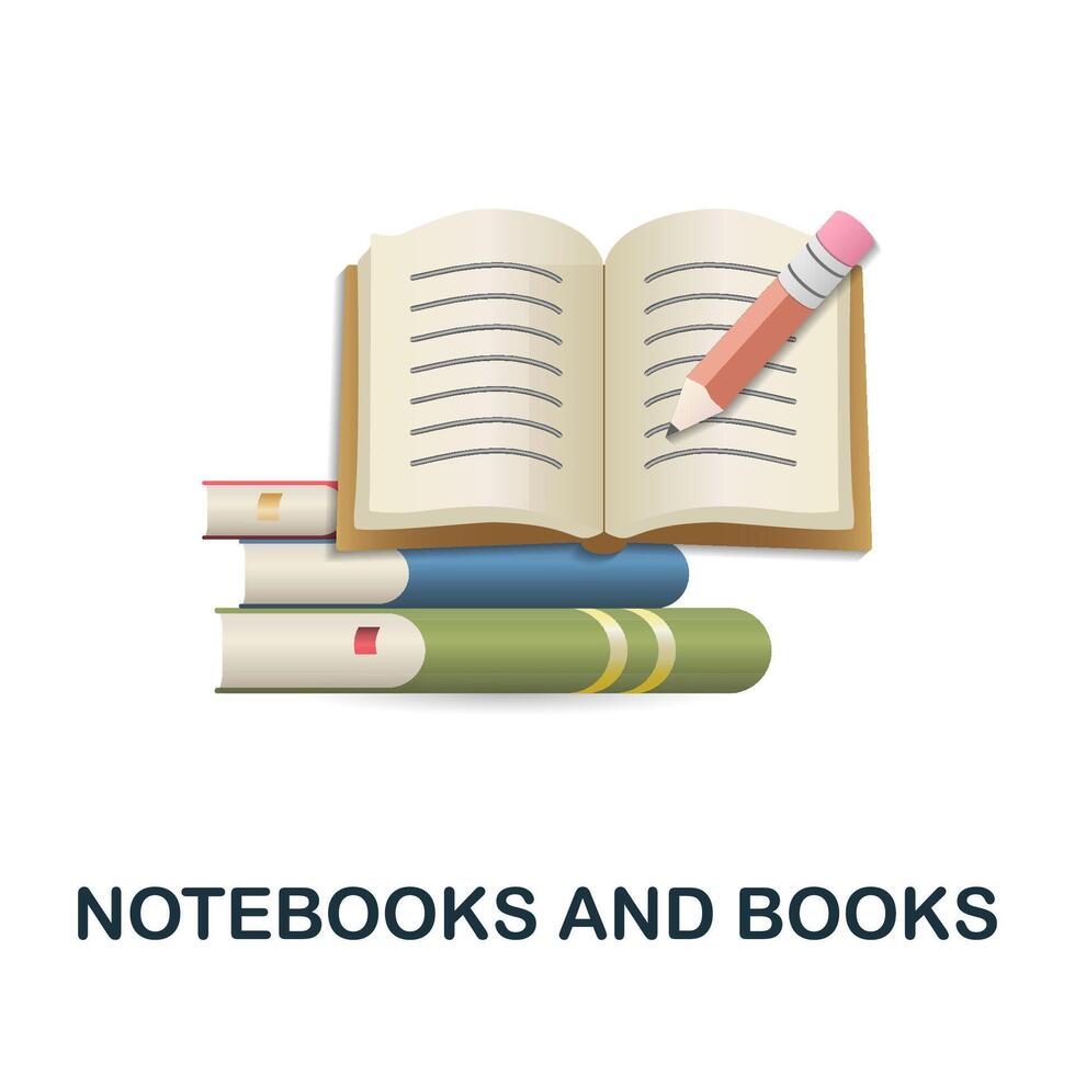 Notebooks And Books icon. 3d illustration from back to school collection. Creative Notebooks And Books 3d icon for web design, templates, infographics and more Pro Vector