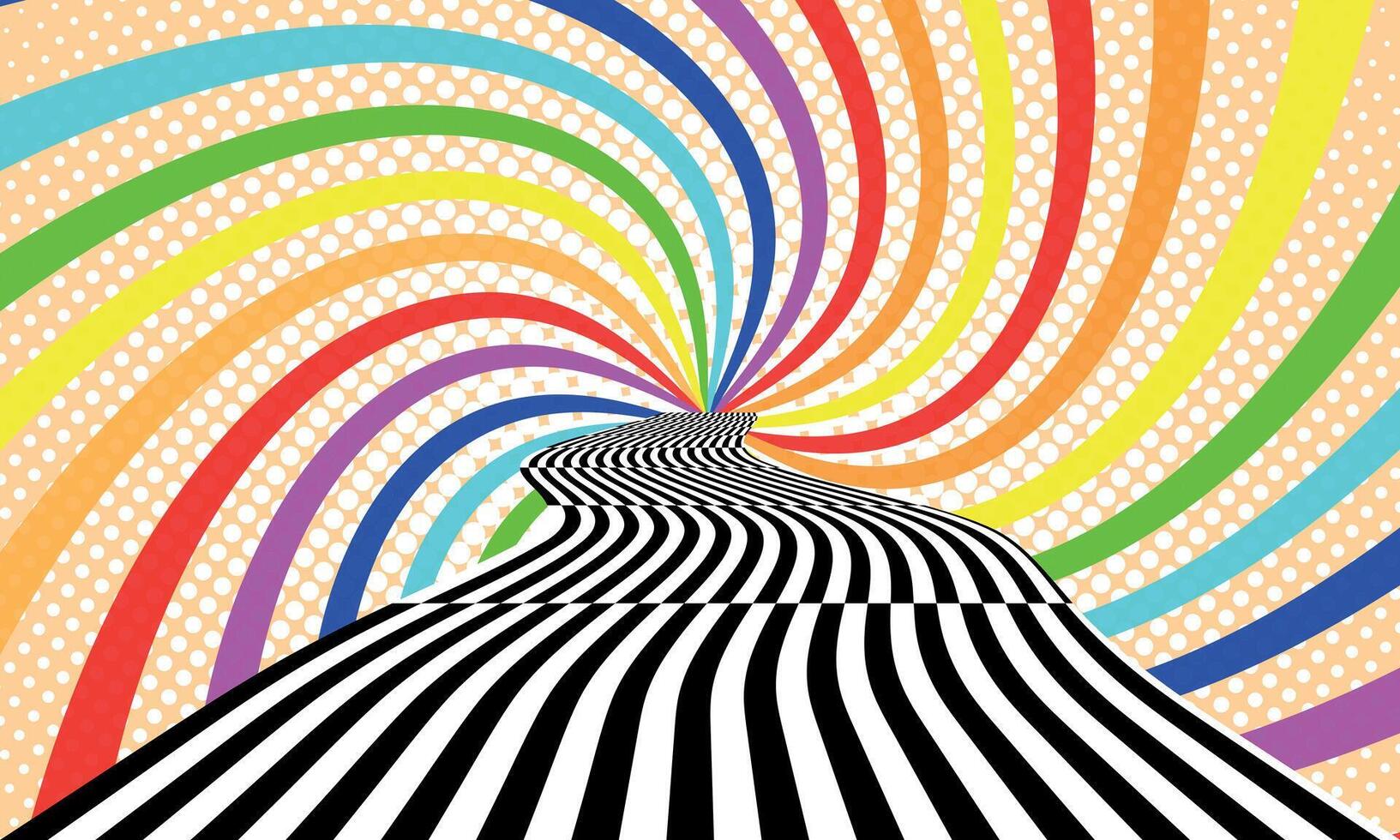 Groovy hippie 70s backgrounds. Waves, swirl, twirl pattern. Twisted and distorted texture in trendy retro psychedelic style. Y2k aesthetic. Pro Vector
