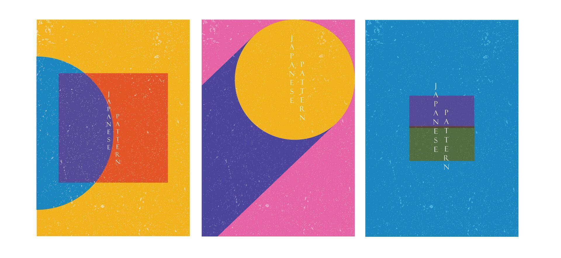 Abstract template in risography style. Japanese pattern and icon . Oriental wedding invitation and frame background. Geometric pattern and circle shape decoration. Pro Vector